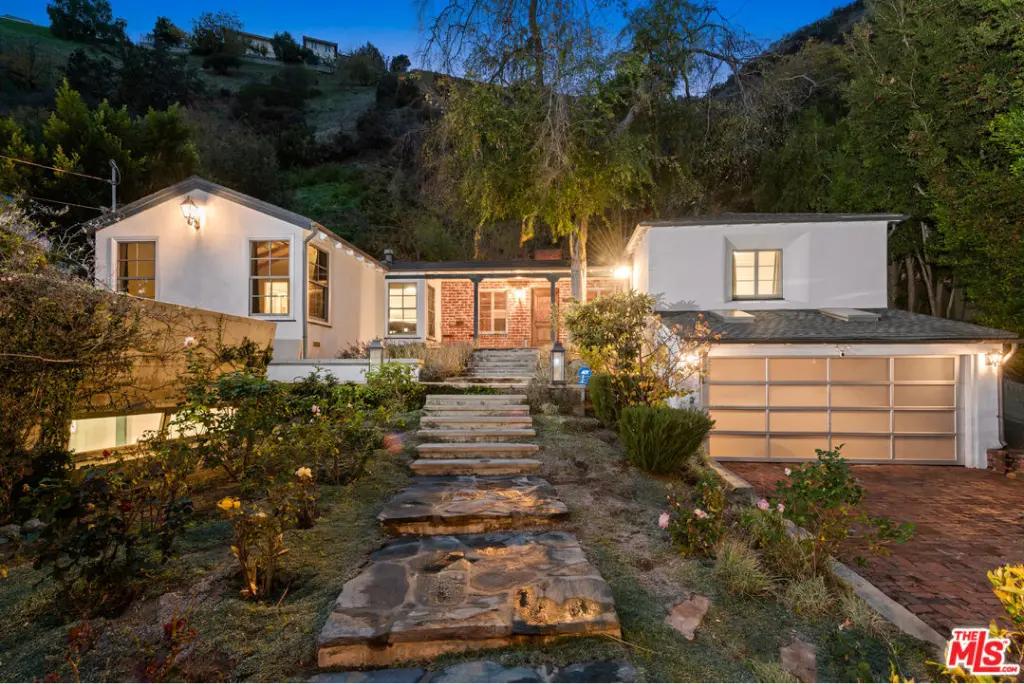 Sited atop Outpost Estates, and with views of the Hollywood sign and beyond, this Mid-Century modern has just undergone a complete renovation. The main level is open, with the living room and dedicated dining area seamlessly connecting to a kitchen with stainless appliances and brass finishes. The second level is dedicated to a generously-sized primary suite, with modern bathroom, seating area, and views outside. The backyard is private, with ample space to entertain a gathering of 20 friends or dine al fresco. A few steps up lead to a seating area/meditation deck, a great vantage point for panoramic vistas. All this, in Valley View Elementary. Conveniently located to Mulholland, Runyon Canyon, the Hollywood Bowl, the Studios, and 101 Freeway. Sale includes adjacent APN#: 2428-022-016