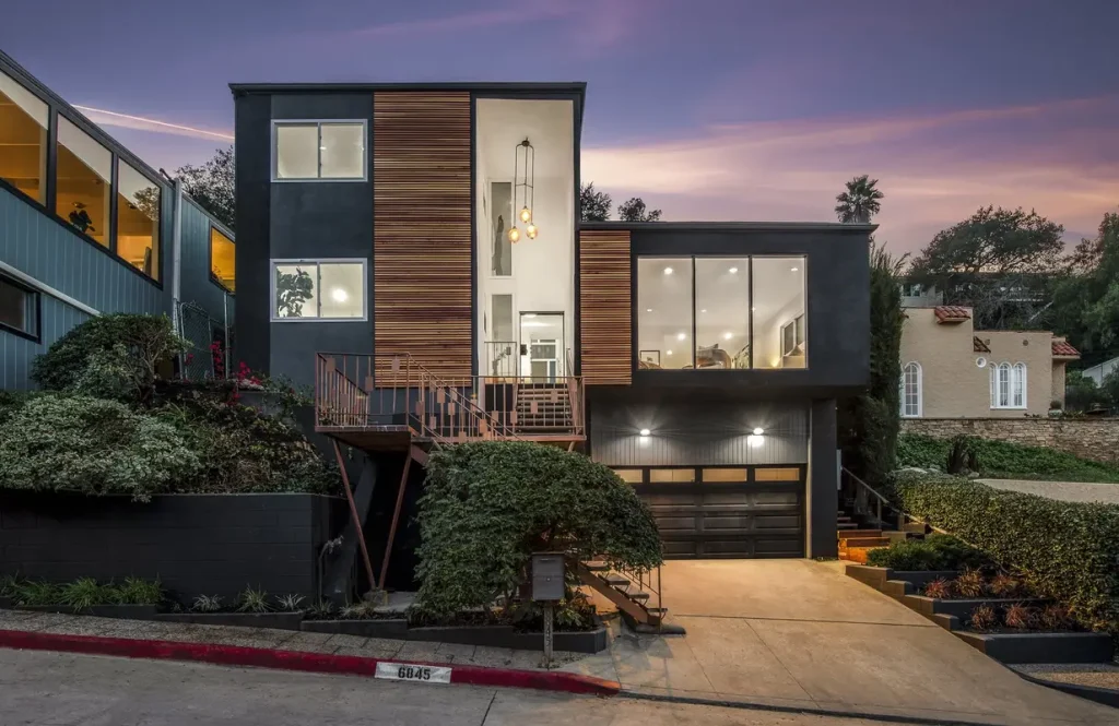 Immersive panoramic jetliner views from dusk until dawn define this Hollywood Hills Modern situated privately within the royal corridor. Sold by Chris Shahinian.